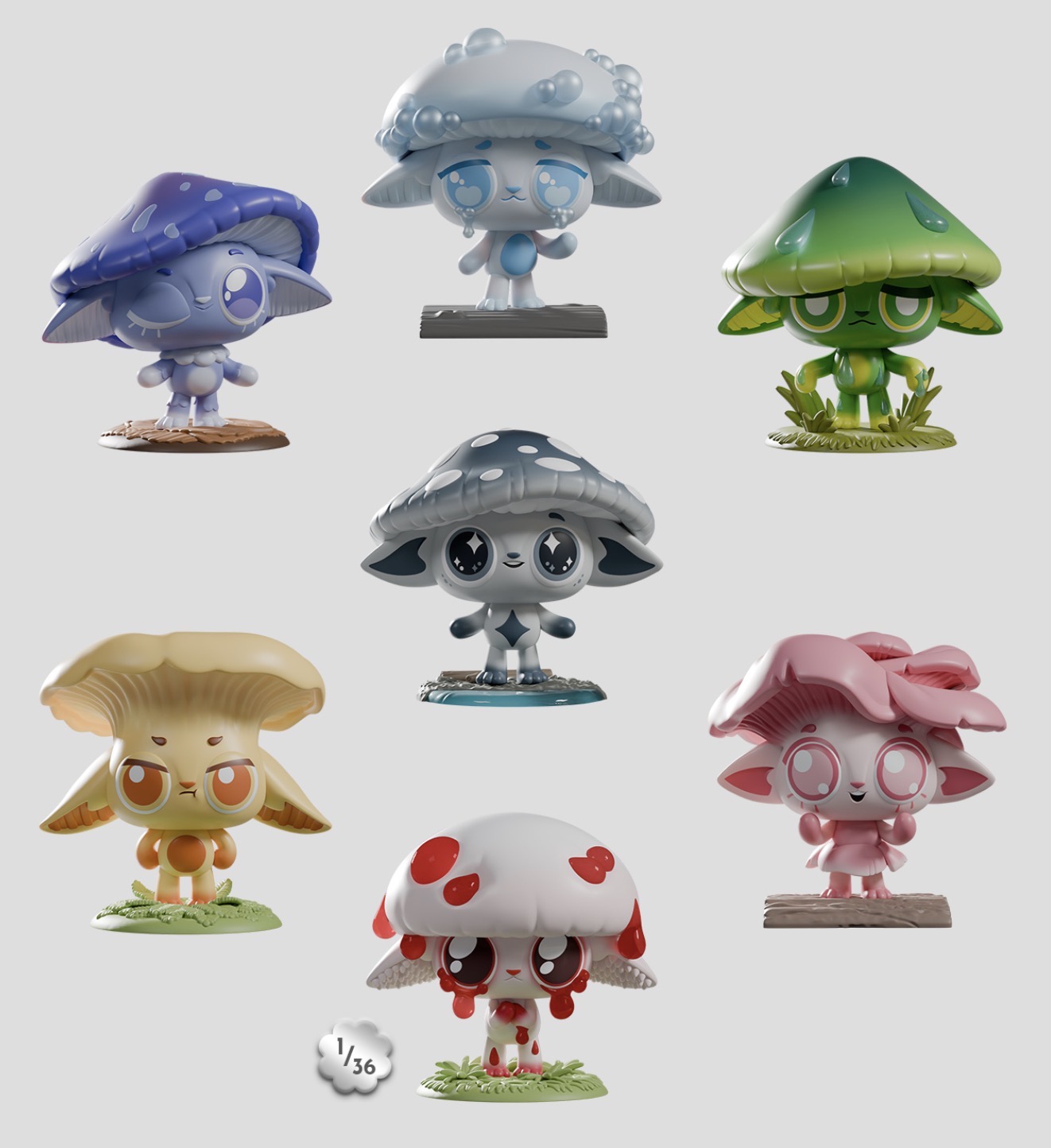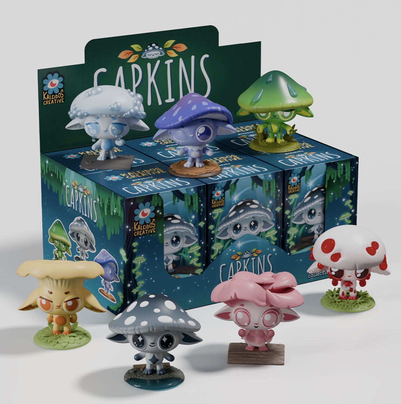 A new cast of colorful characters have arrived for Capkins Series 2! Mysterious + mischievous, the Capkins dwell in the deepest + darkest corners of the Fungi Forest. Meet the newest residents of Capkin Village, all inspired by real-life mushrooms! Stand approximately 3 inches tall. From Kaleidos Creative.