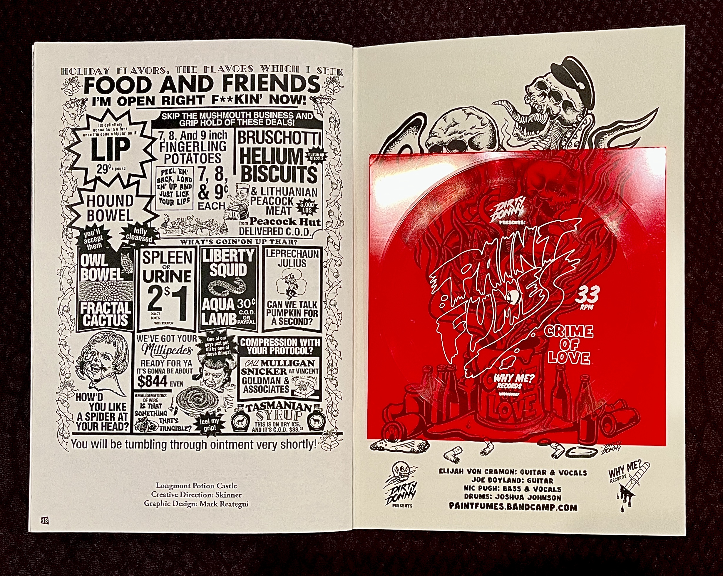 Every Name Was Taken Fanzine by Dirty Donny is an old school style mini black + white zine with front + back covers screen printed in 5 colors! Includes a red flexie disc from the Paint Fumes! Also Features: