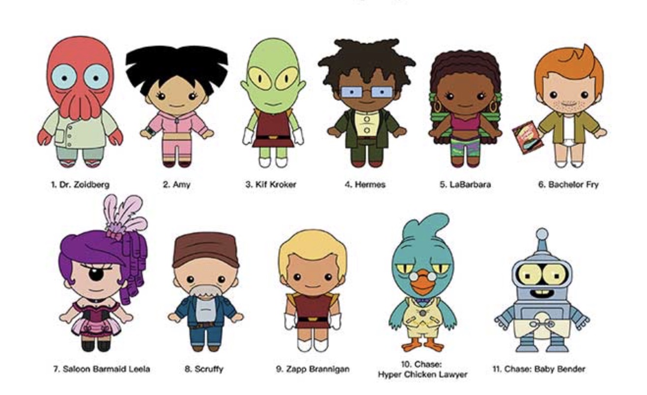 All your favorite Futurama characters are now here for you to collect in 3D foam! Each figure measures approximately 2 inches tall + has a clip to hang from your bag, purse, coat, belt, whatever! Collect all your favorites like Fry, Leela, Zoidberg + more. Make sure to keep an eye out for the special rare chase figures!