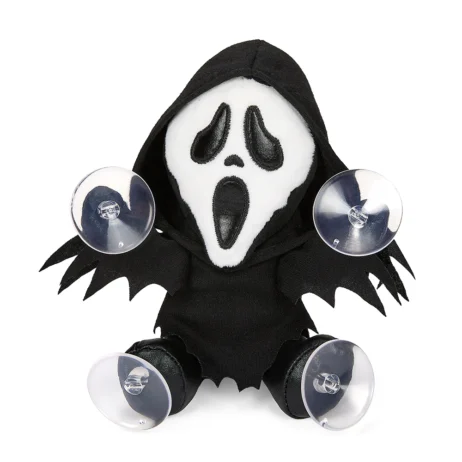 Get ready to scream with delight! This cuddly plush version of the infamous slasher is perfect for adding a playful scare to your collection. This 6 inch Ghost Face Plush from Kidrobot comes equipped with four sturdy suction cups, perfect for attaching to any window or smooth surface.
