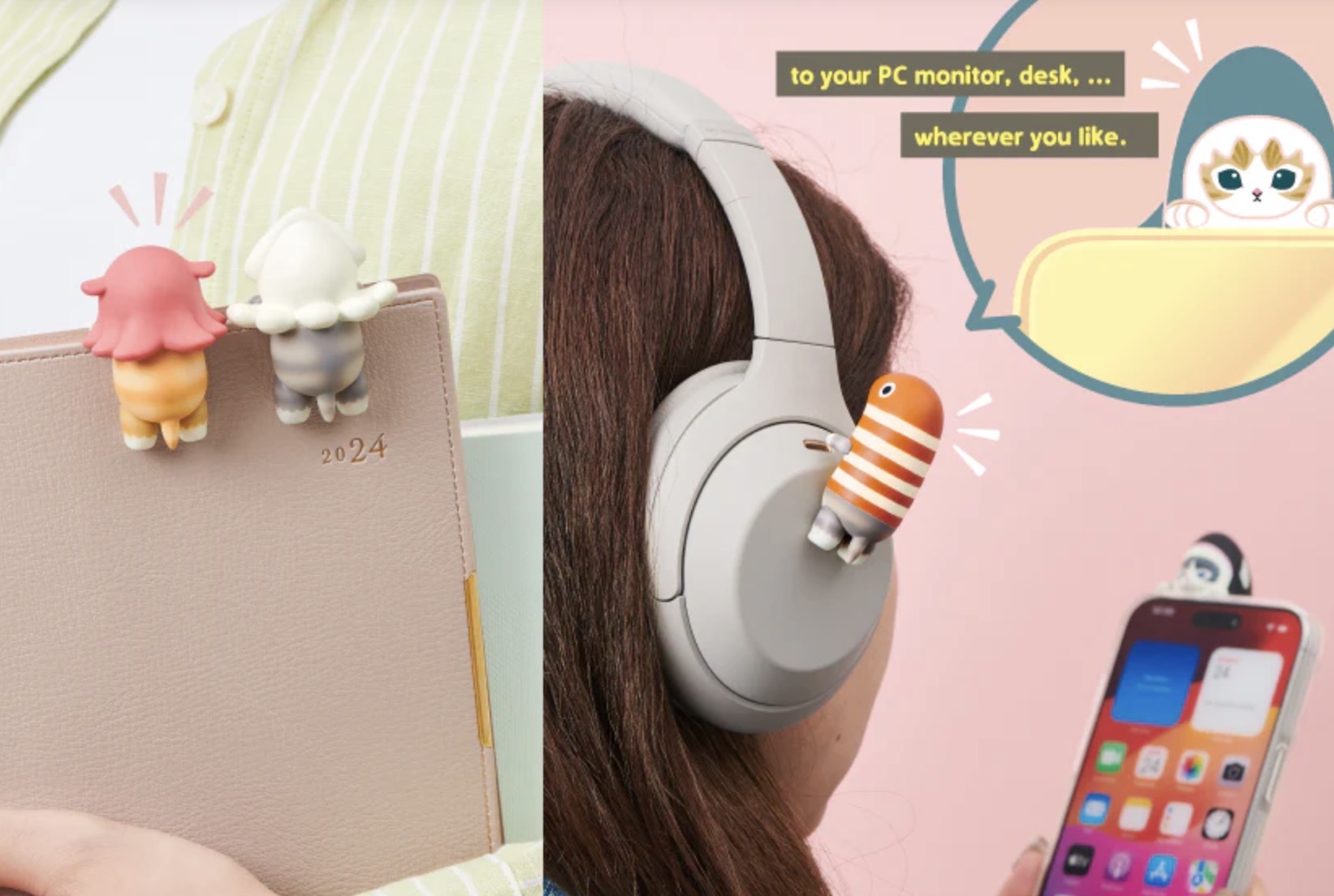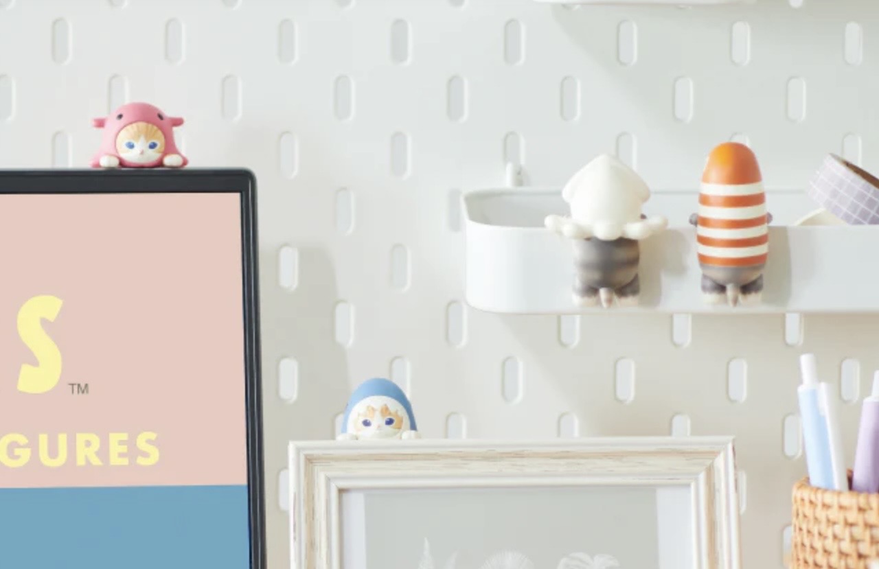 With the Hippers Mofusand series, you can enjoy these incredibly popular characters’ adorable faces peeking over the front of your laptop, desk, or phone. Each cat is dressed as a sea animal + has a reusable adhesive on its belly so you can stick them wherever you want! With their plump bottoms + cute tails sticking out from behind, these wonderful, slightly surreal cats will add a touch of color to your everyday life.