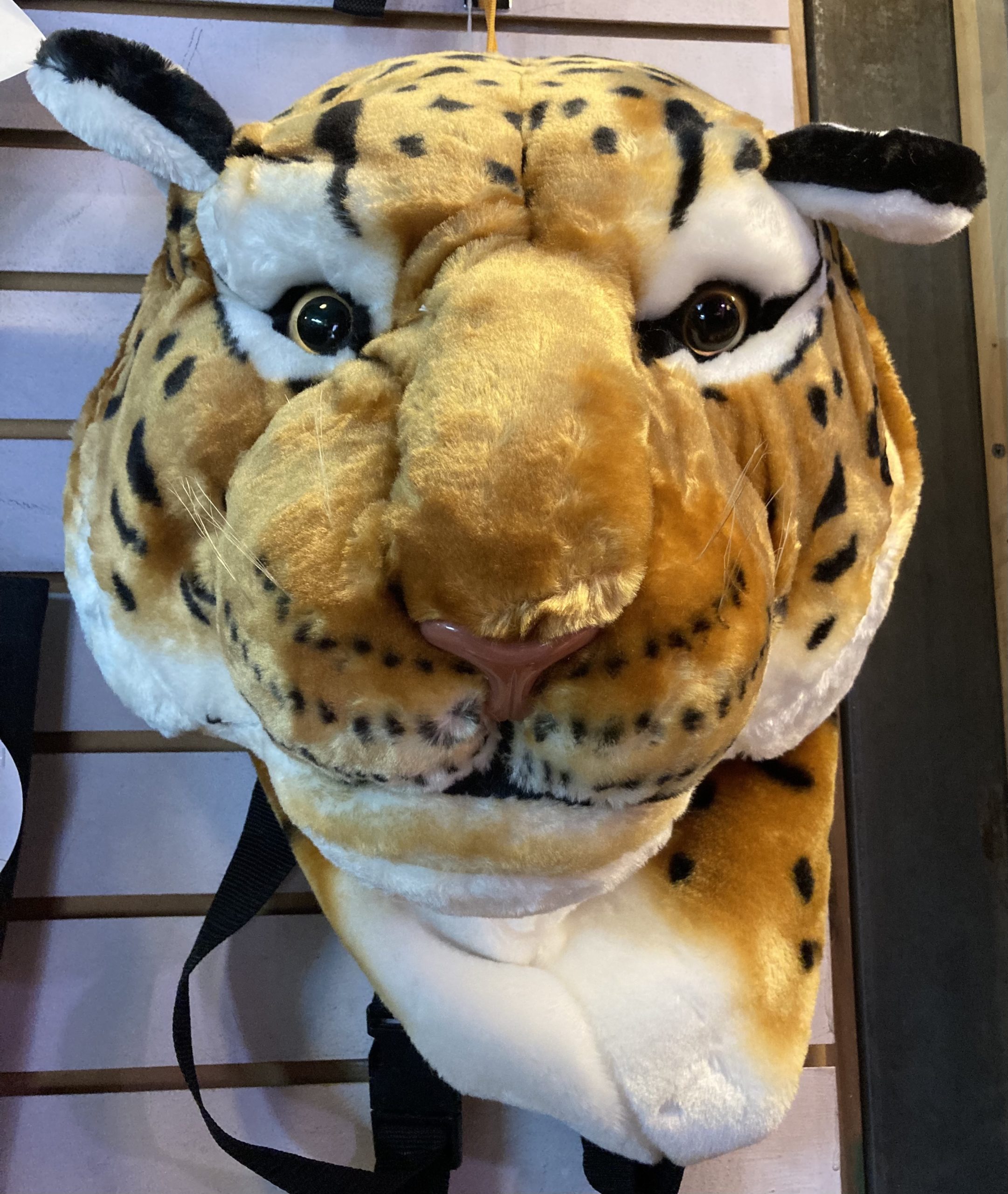 This Jaguar Head Backpack features soft, plush fabric, making it very huggable + super cute. The head is ultra light, shaped by rigid foam in the head to give it a realistic appearance. You can even mount it on your wall! The straps adjust in length from 17 to 32 inches. Product measures 24 x 15 x 12 inches. A real conversation starter when you’re at school!