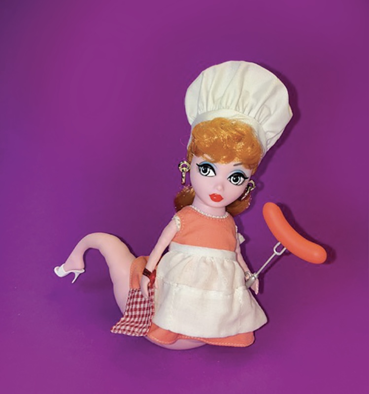 Larvie the Teen Age Fashion Maggot is the world’s most beautiful, glamorous grub! Now she has 3 new faBUGulous outfits to wear! Choose from the seductive Maggot in the Moonlight, with gloves + pearl necklace, or the polka-dotted Parisienne Parasite, accessorized with clutch + stole, or the all-American Larvie-Q for the cook out! Each set is sold separately. Dolls not included with the sets, but the Blond, Red head, Bubble Cut Larvie + Fruit Fly Midge are available through this website. Collect them all!