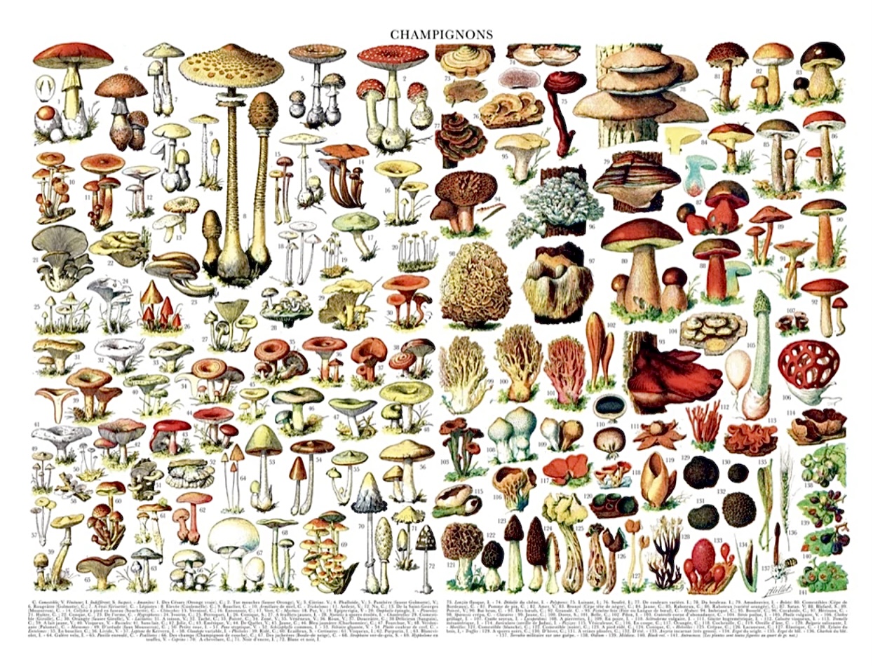 Portabello, shiitake, crimini or chanterelle. What is your favorite kind of mushroom? This 1000 piece puzzle is a field guide to mushrooms of all kinds both edible + poisonous. Illustration by Adolphe Philippe Milot. Finished Puzzle Size: 26.625 x 19.25 inches.