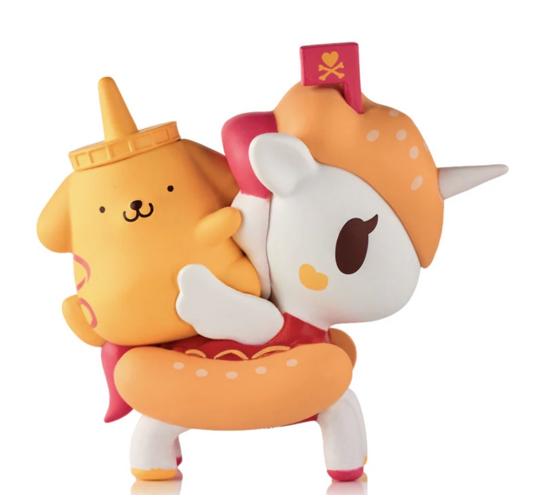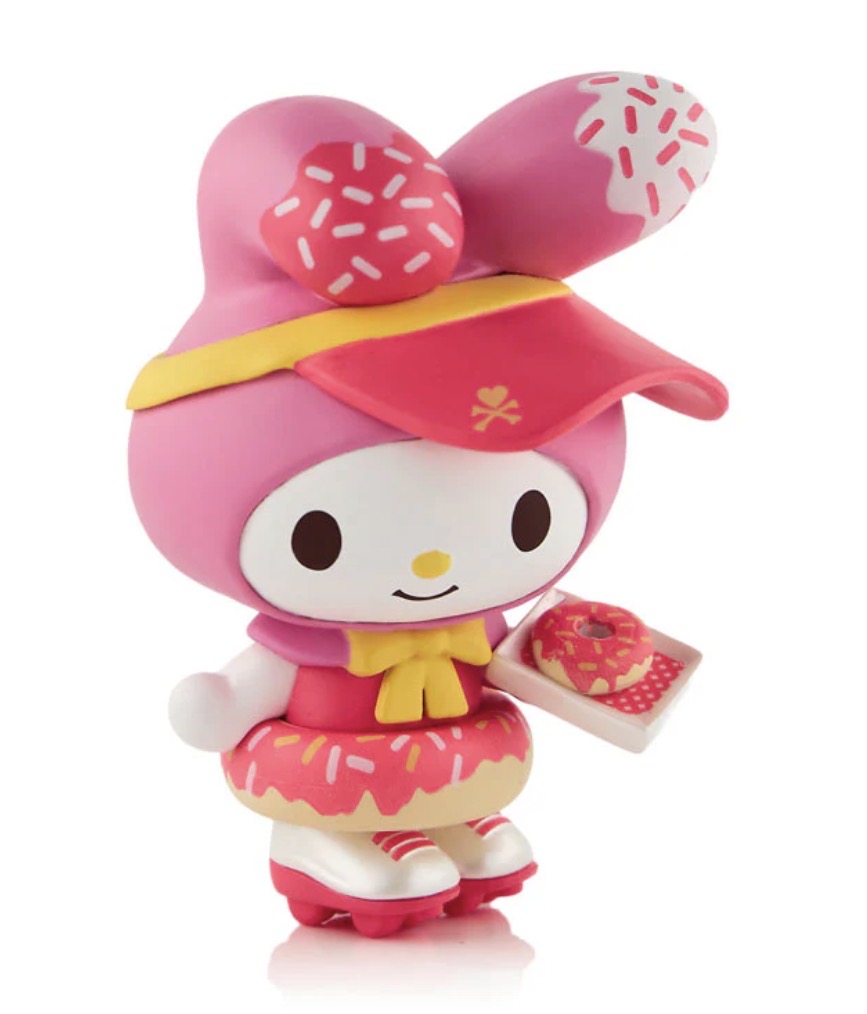 Welcome to the cutest diner in town! The Tokidoki x Hello Kitty + Friends Blind Box Series is packed with retro roller-rink vibes, fast-food fun + tons of tiny details you will love!  From Pompompurin & Hot Doggy Unicorno, Cinnamoroll, Keroppi, Hello Kitty, Kuromi, My Melody, Tuxedosam + Pochacco Unicorno Sunday, each figure is a delicious surprise waiting to be unwrapped! Each figure stands approximately 3 inches tall.