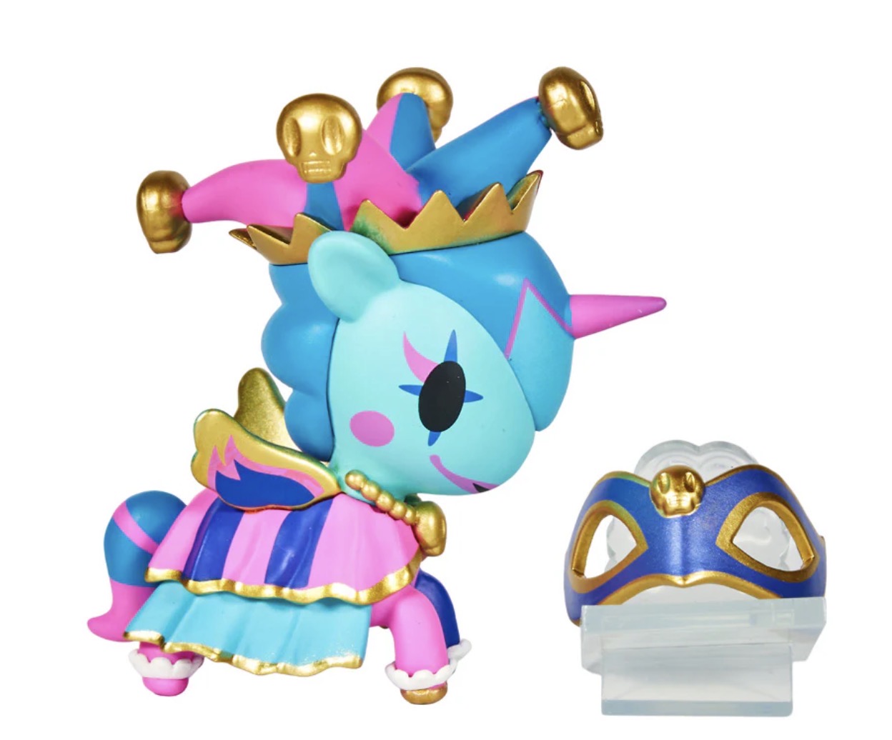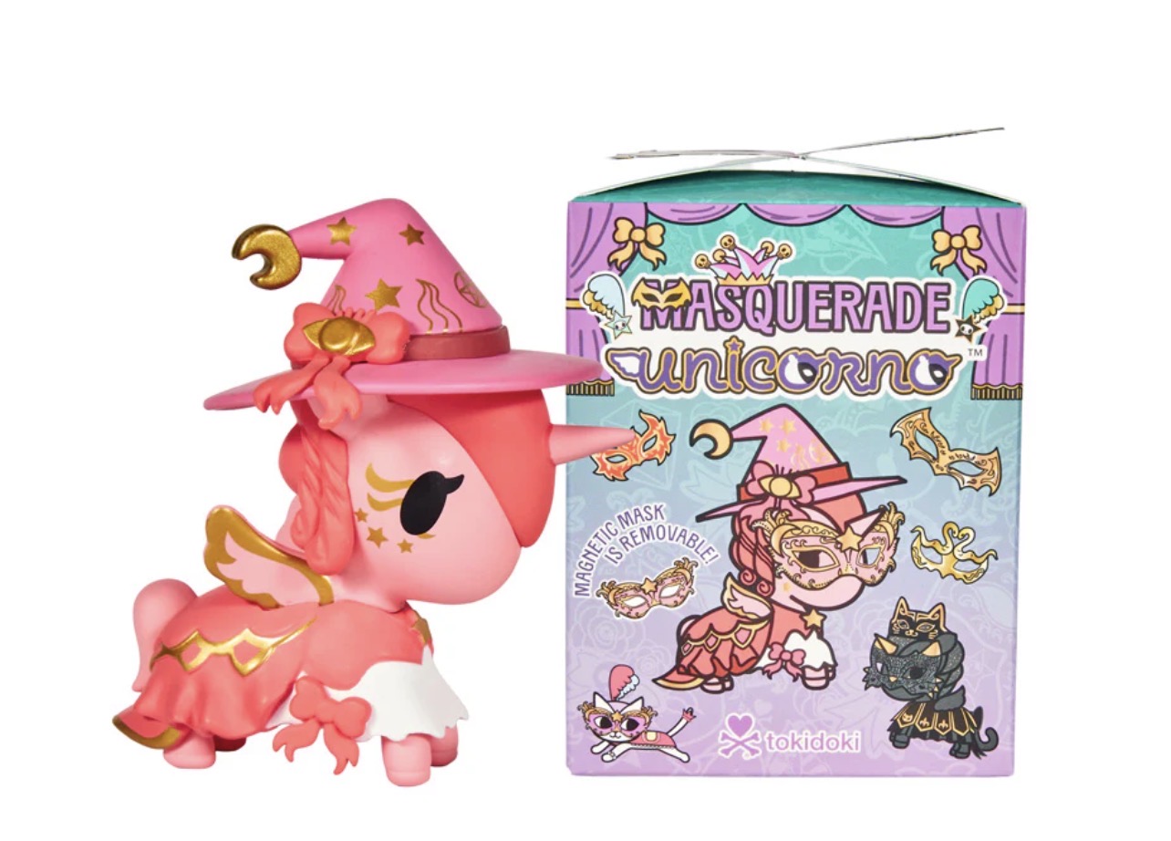 Step into a world of mystery + mischief with the After Dark Masquerade Unicorno Blind Box! Dressed to impress + ready for the grand ball, each Masquerade Unicorno features removable glittering masks, hidden identities + dazzling details. Collect them all + let your Unicornos shine behind the mask! Each figure stands approximately 3 inches tall.
